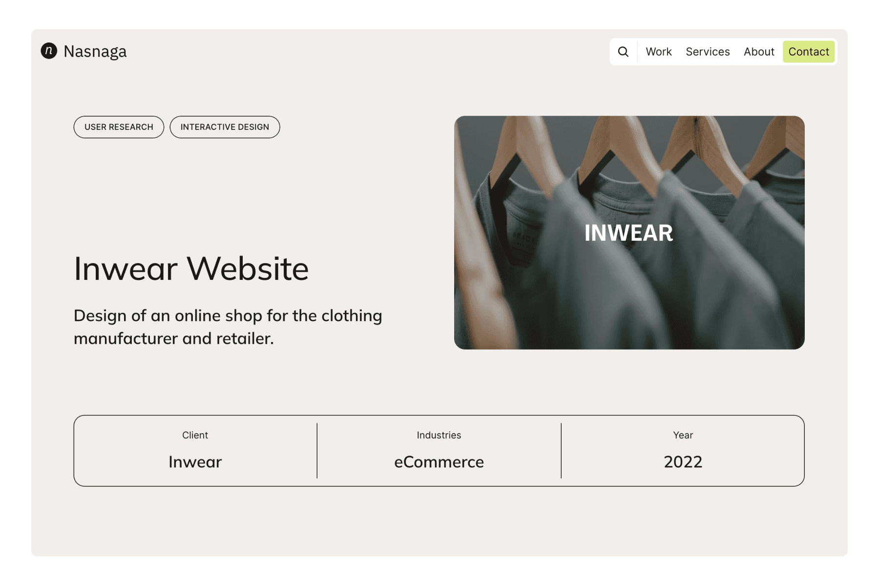Nasnaga is a beautiful minimalistic Framer template for digital agencies, studios and freelance designers. Available in light mode with CMS-based projects that can be filtered by service category.